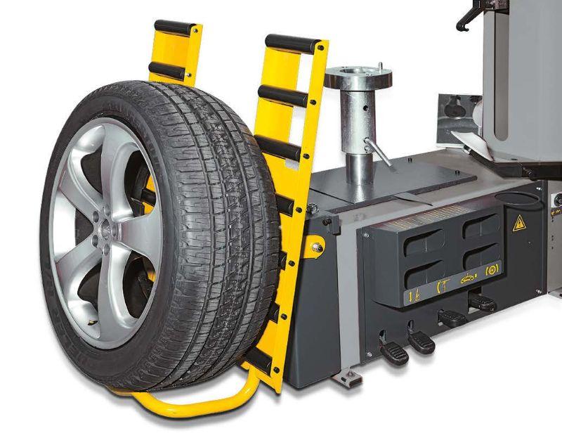 Monteren en demonteren van zeer stijve banden wordt zo makkelijk als uw veters strikkenDaarnaast is een hydraulische hiel afdrukrol beter te doseren en blijft er geen restdruk over nadat de hiel losgekomen is van de velg, iets dat bij machines met een pneumatische hiel afdrukrol tot een plotselinge ‘klap’ kan leiden als de hiel los schiet. Luchtdruk is alleen nog nodig om de afneemvinger te laten draaien en om de lift en hulparm te bekrachtigen.