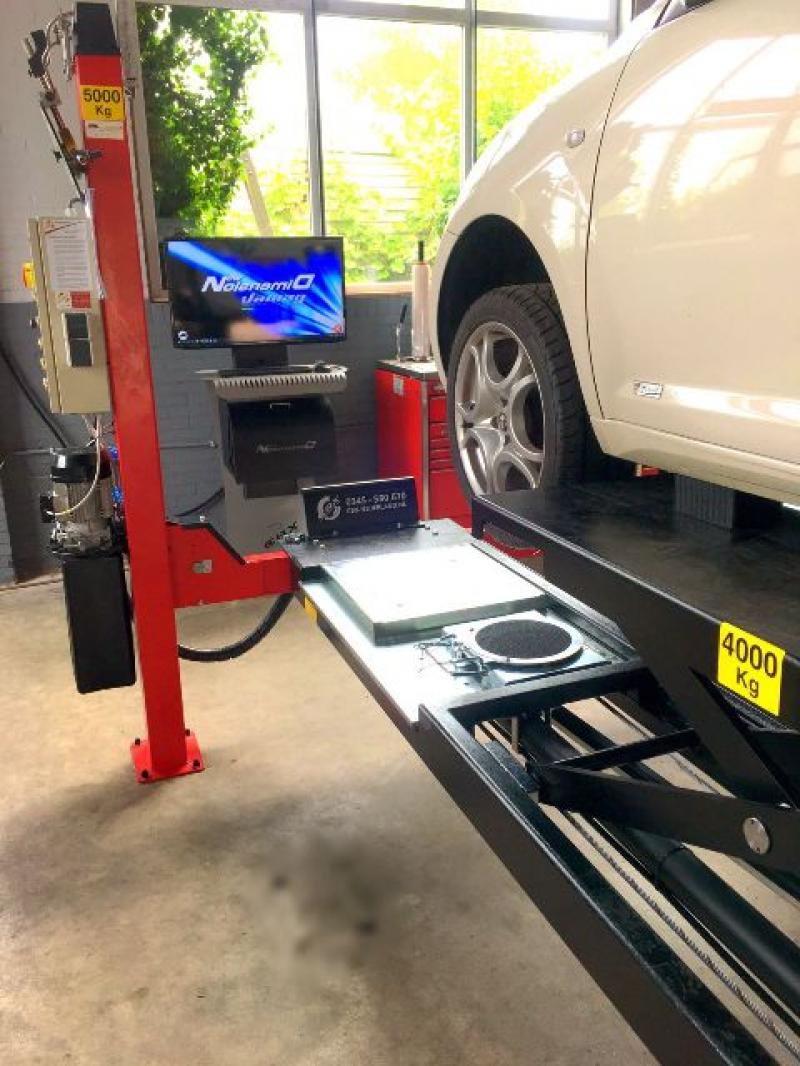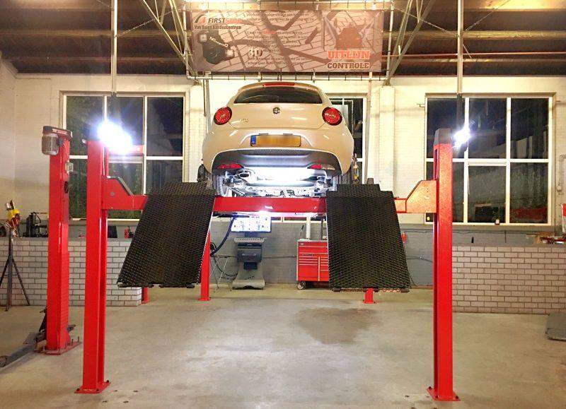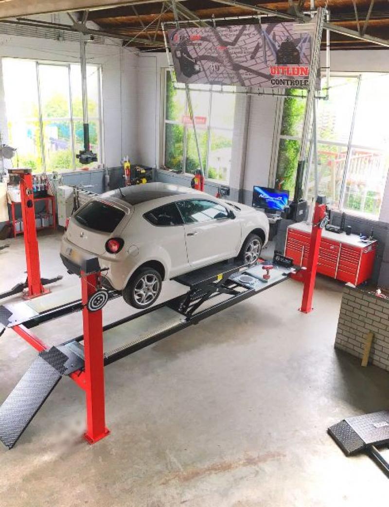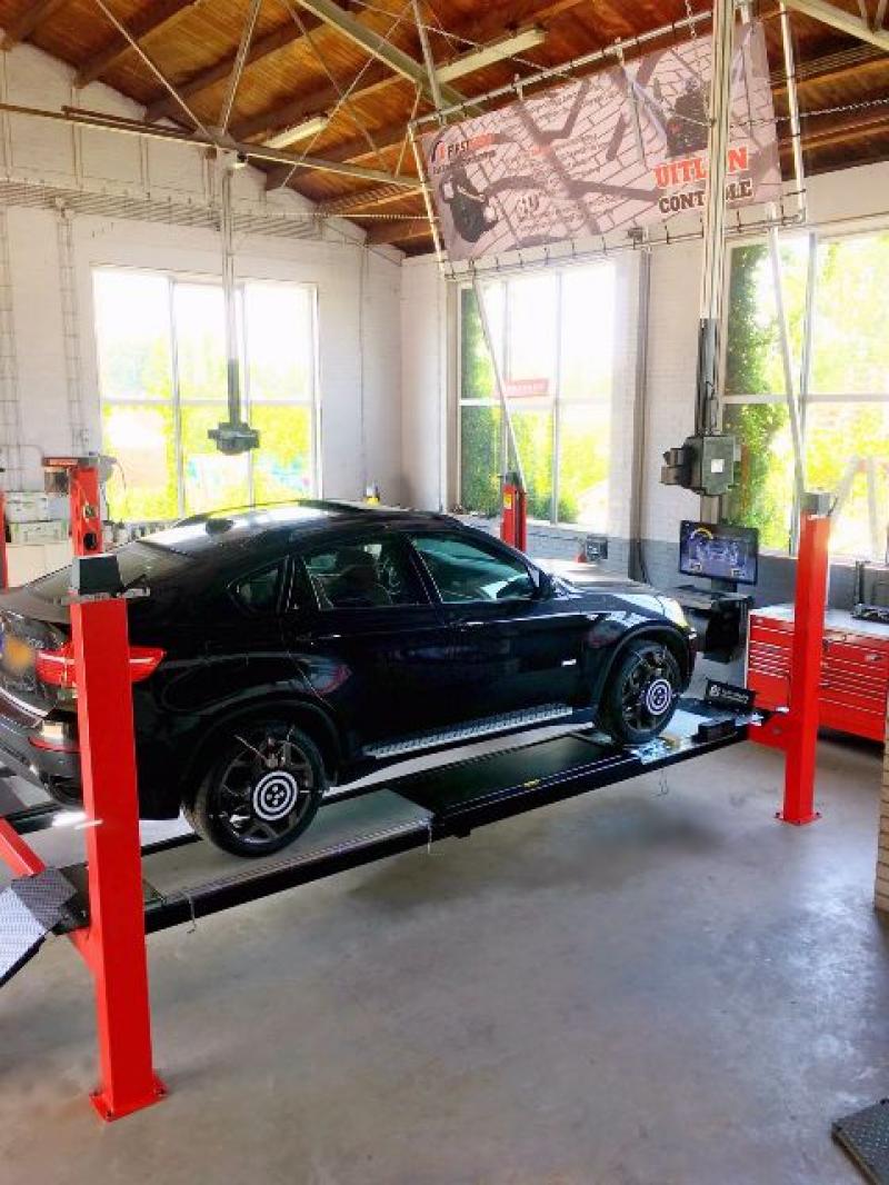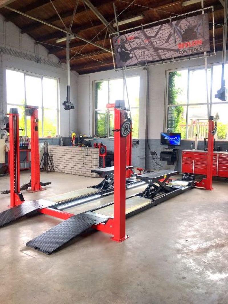 “Maar Maurits en Johan adviseerden me een uitvoering met een heftafel te nemen. Iets duurder, maar meer gemak. Ik ben erg blij dat ik dat gedaan heb. Ik doe erg veel winterbanden, met een heftafel kan dat veel sneller. De bandenbrug die ik had gebruik ik bijna niet meer, alles gaat op de vierkoloms hefbrug.” Logisch natuurlijk. Iedere auto op deze vierkoloms hefbrug een snelle uitlijncheck kunnen geven en daarna gelijk met vier wielen los kunnen zetten met de heftafel levert veel tijdswinst op.